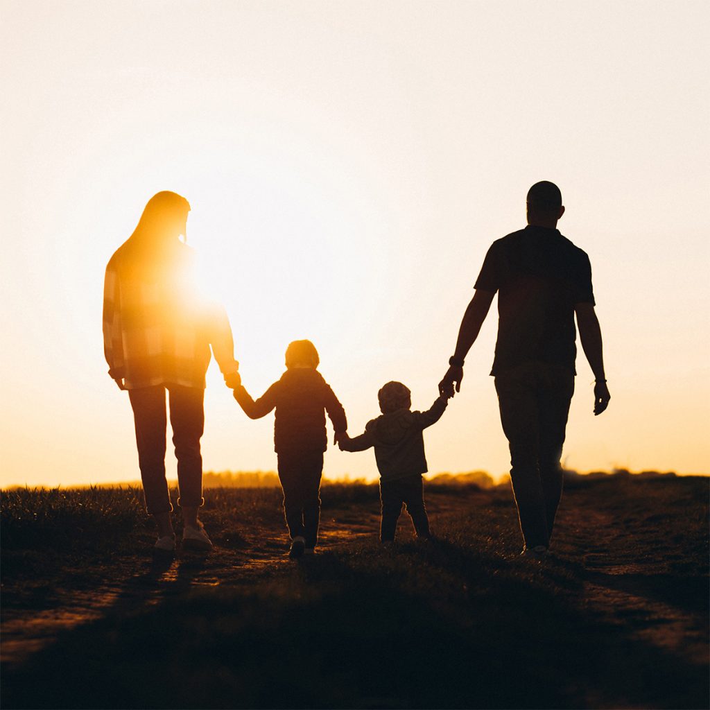 Happy family silhouette on the sunset